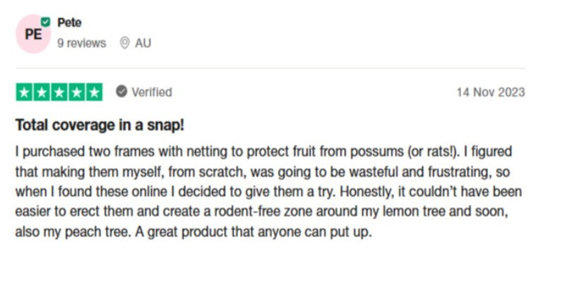 Keep the fruit for yourself with out tallest and most popular tree frame sitting at 2.5 metres tall and 2 metres diagonally across.