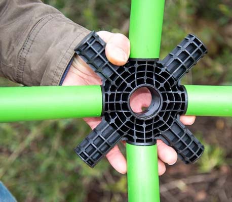 Firstly, you will need to connect watering or irrigation components to your frame via the central Hub. To do this you will need to have the Hub with Thread. This hub has a universal 1-inch BSP thread through the middle and it is this size that you will need components to fit, to easily connect a garden hose and sprinkler or drip irrigation system.